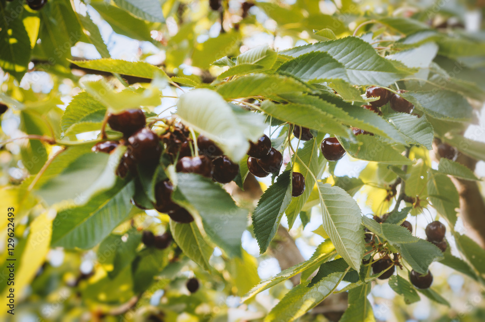 Tasty Black Organic Cherries On A Cherry Trees Branch On A Sunny Summer Day Stock Foto Adobe Stock