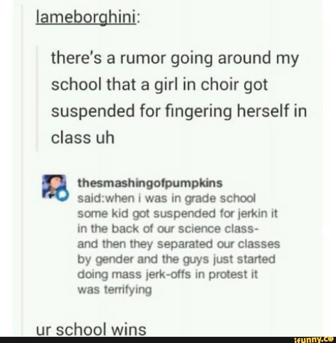 Lameborghini There S A Rumor Going Around My School That A Girl In Choir Got Suspended For